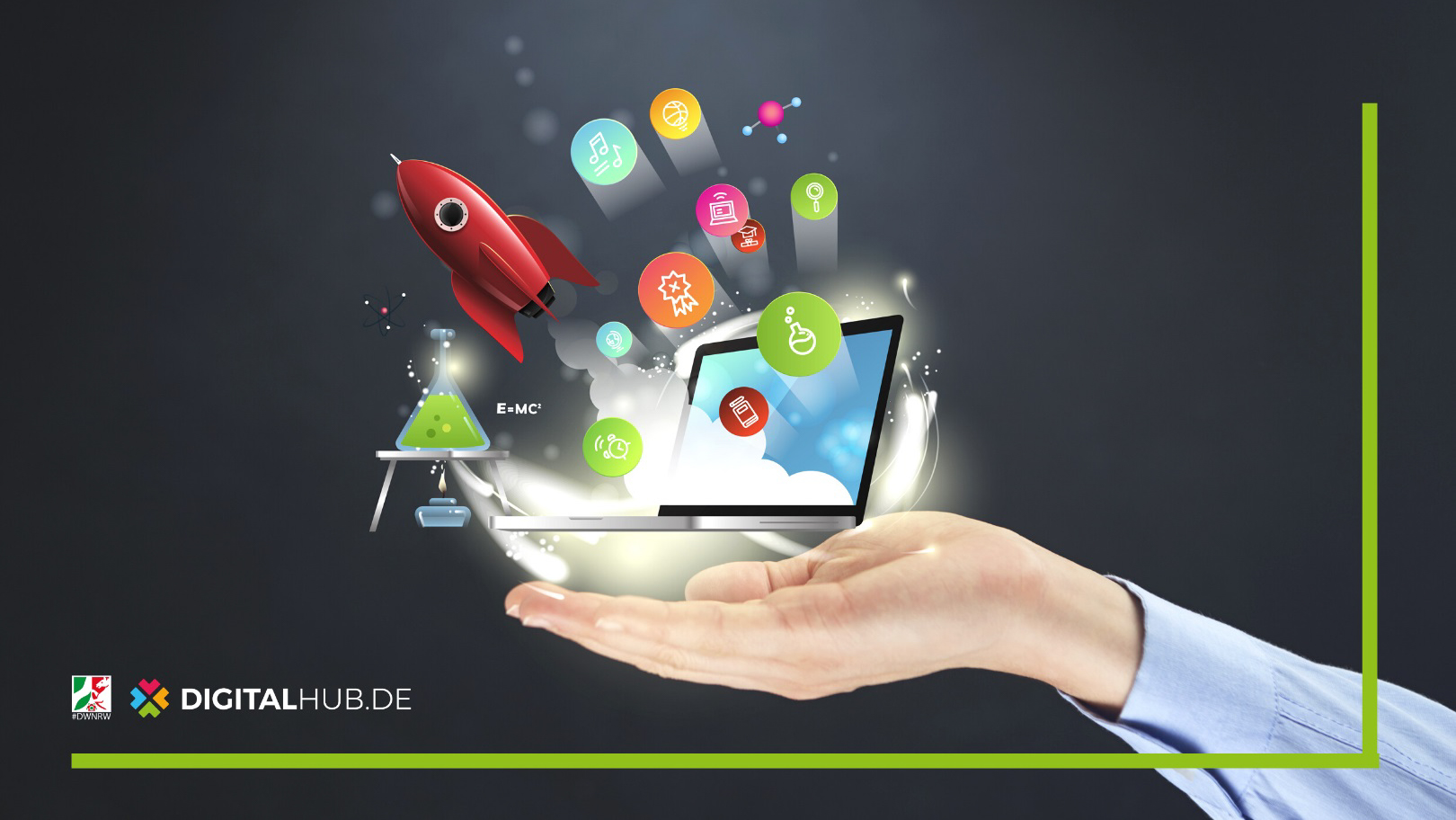 - Im Abschluss haben Sie die Möglichkeit zum Netzwerken mit allen Start-ups, Teilnehmenden und dem DIGITALHUB Team.