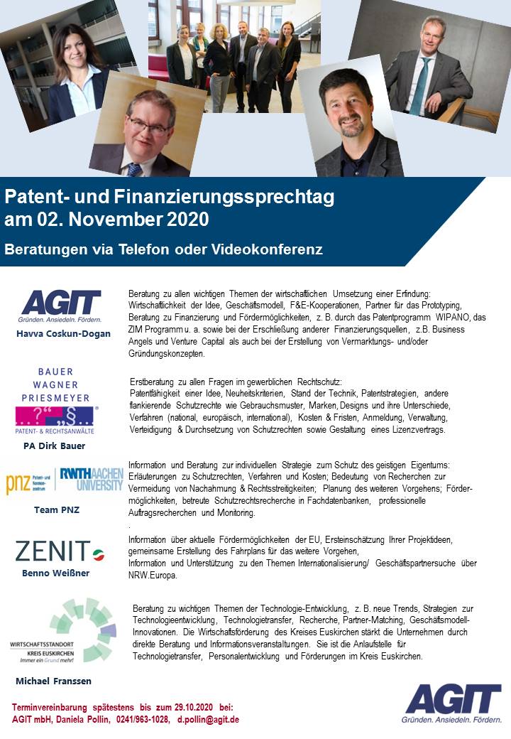 Informationen und Terminvereinbarung bis spätestens zum 29.10.2020 bei: AGIT mbH, Daniela Pollin, 0241/963-1028, d.pollin@agit.de
