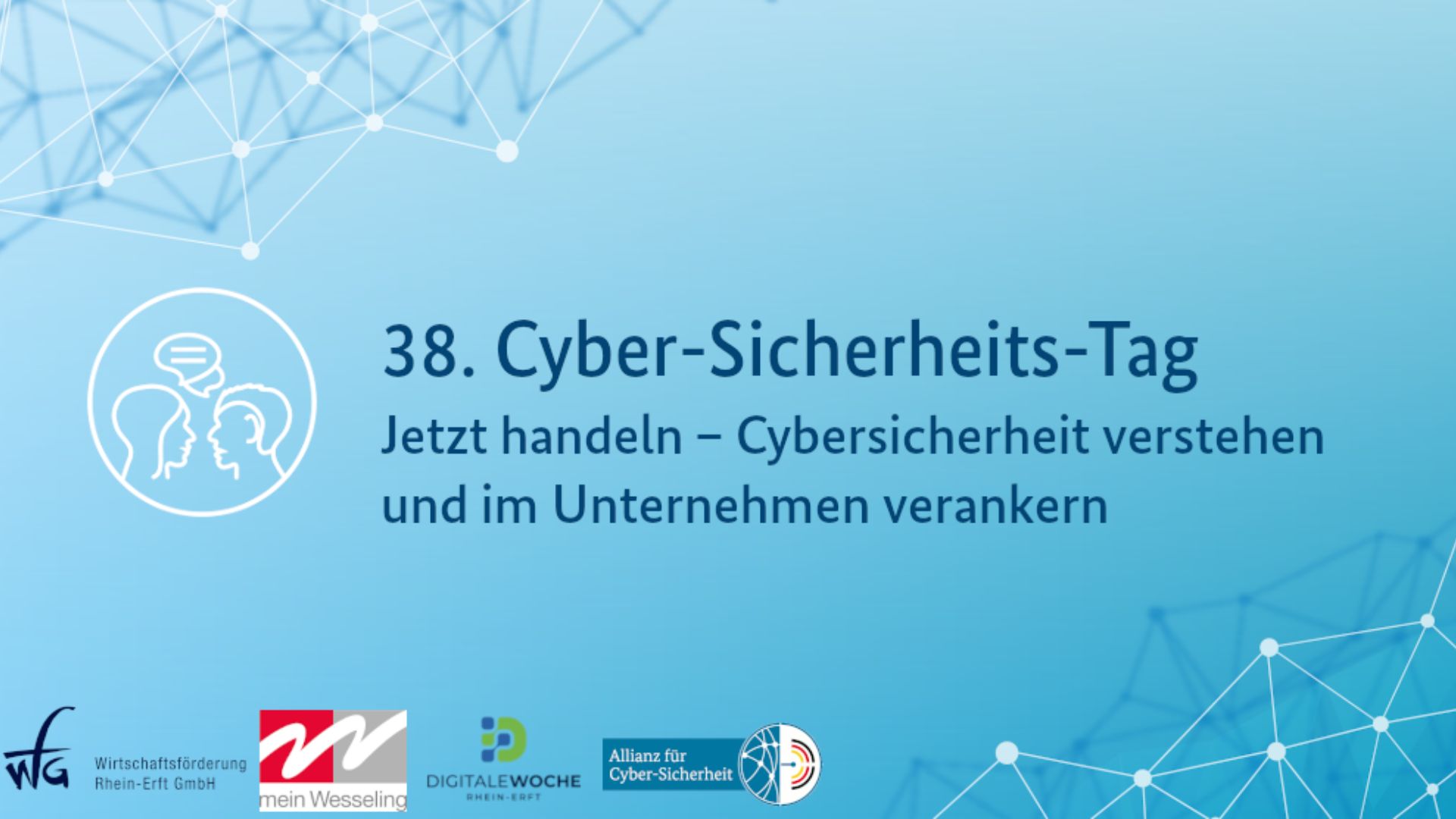 Am 11. September 2025 von 10 bis 17 Uhr veranstaltet die Allianz für Cyber-Sicherheit in Kooperation mit der Wirtschaftsförderung Rhein-Erft und der Wirtschaftsförderung der Stadt Wesseling den 38. Cyber-Sicherheits-Tag. Das Event ist für teilnehmende Unternehmen kostenfrei und findet im Rahmen der Digitalen Woche Rhein-Erft statt. Es steht unter dem Motto „Jetzt handeln – Cybersicherheit verstehen und im Unternehmen verankern“. Der Fokus liegt auf der regionalen Wirtschaft: Eingeladen sind insbesondere kleine und mittlere Unternehmen aus dem Rhein-Erft-Kreis und der ganzen Region Köln-Bonn-Aachen, die ihre IT-Sicherheitsmaßnahmen stärken und konkrete Schritte zur Verbesserung der Cyberresilienz erlernen möchten.