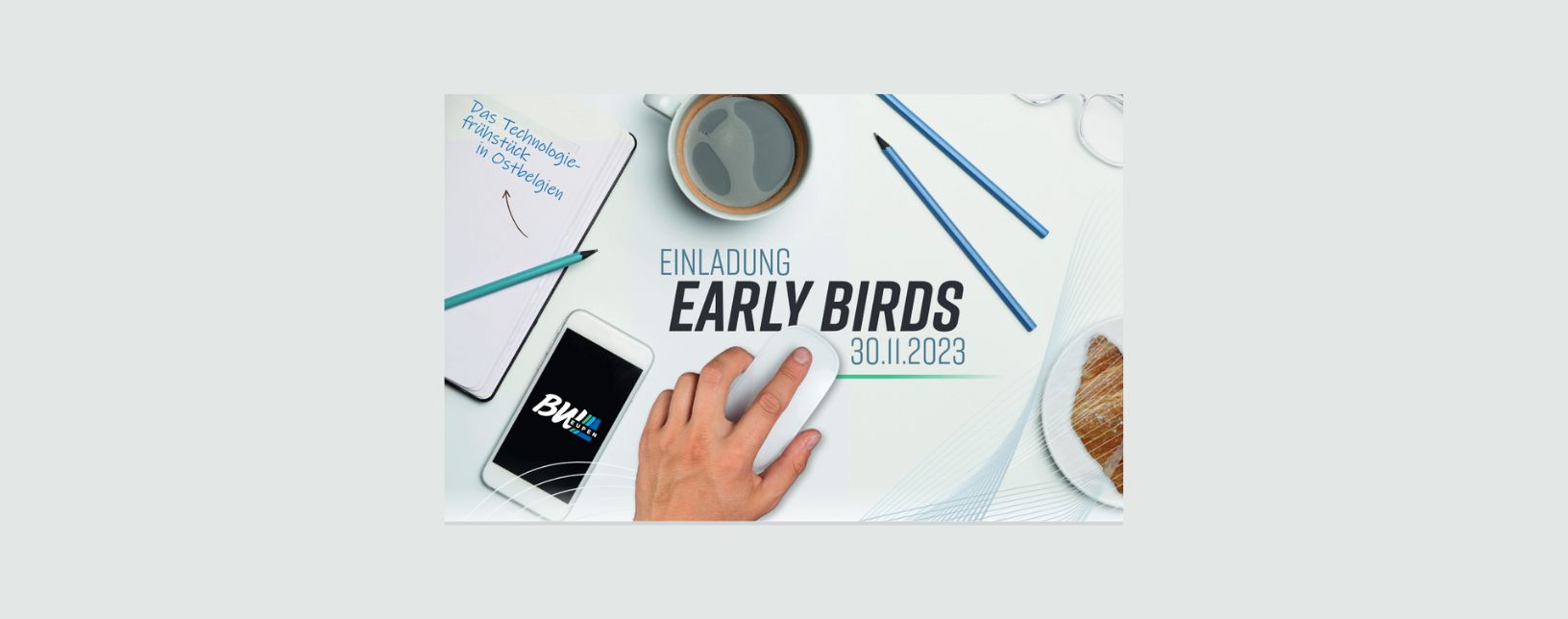 Mit der Veranstaltungsreihe „EarlyBirds“ sind Sie eingeladen, zu früher Stunde über Zukunftsthemen zu diskutieren. Sie sollen zum Nachdenken und Querdenken inspiriert werden und in lockerer (Frühstücks-) Atmosphäre bei einem gastgebenden Unternehmen eine Plattform zum Netzwerken genießen.