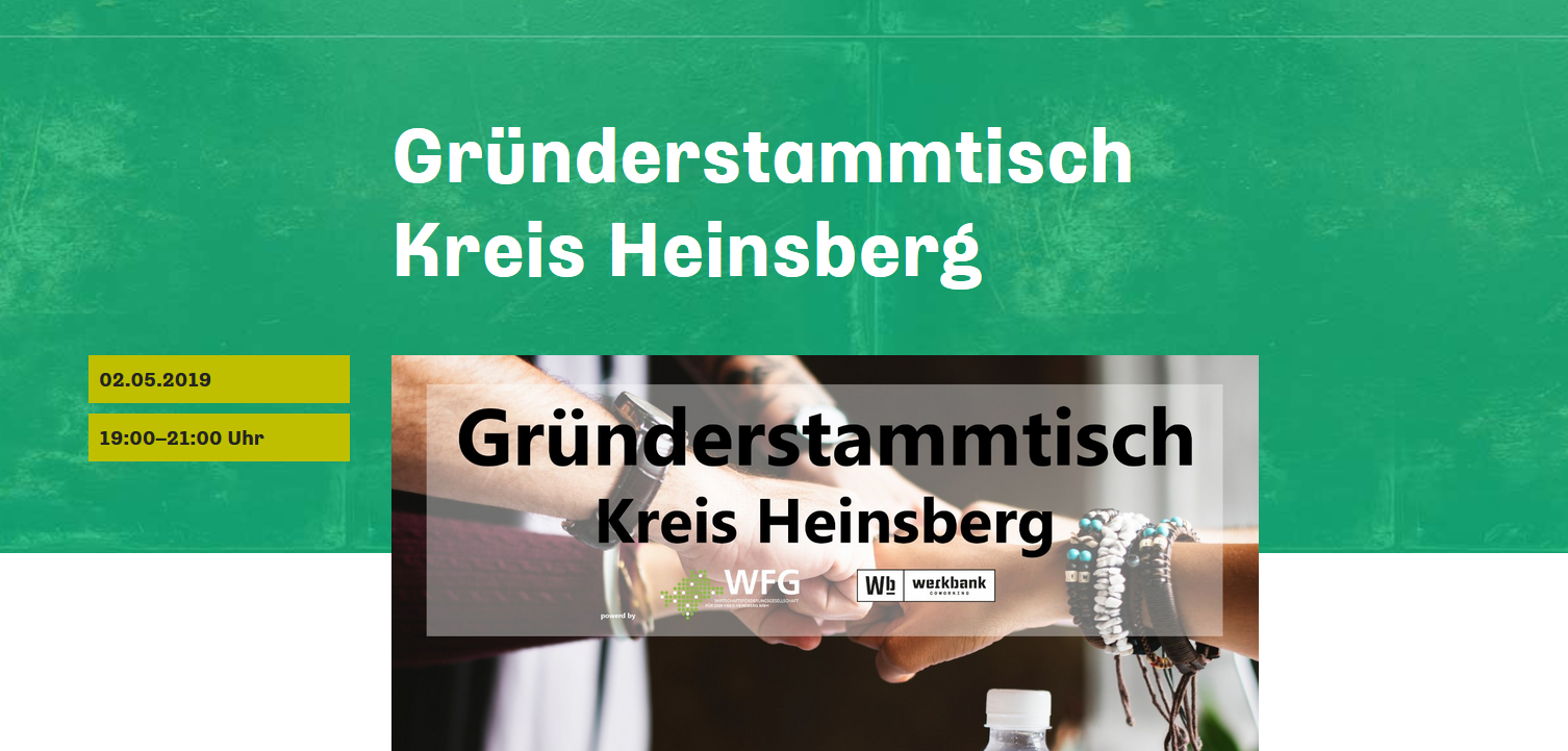 Anmeldungen sowie Ideen und Anregungen zum Stammtisch werden gerne per E-Mail an gruenderstammtisch@wfg-kreis-heinsberg.de entgegen genommen. Die Initiatoren freuen sich auf eine rege Teilnahme.