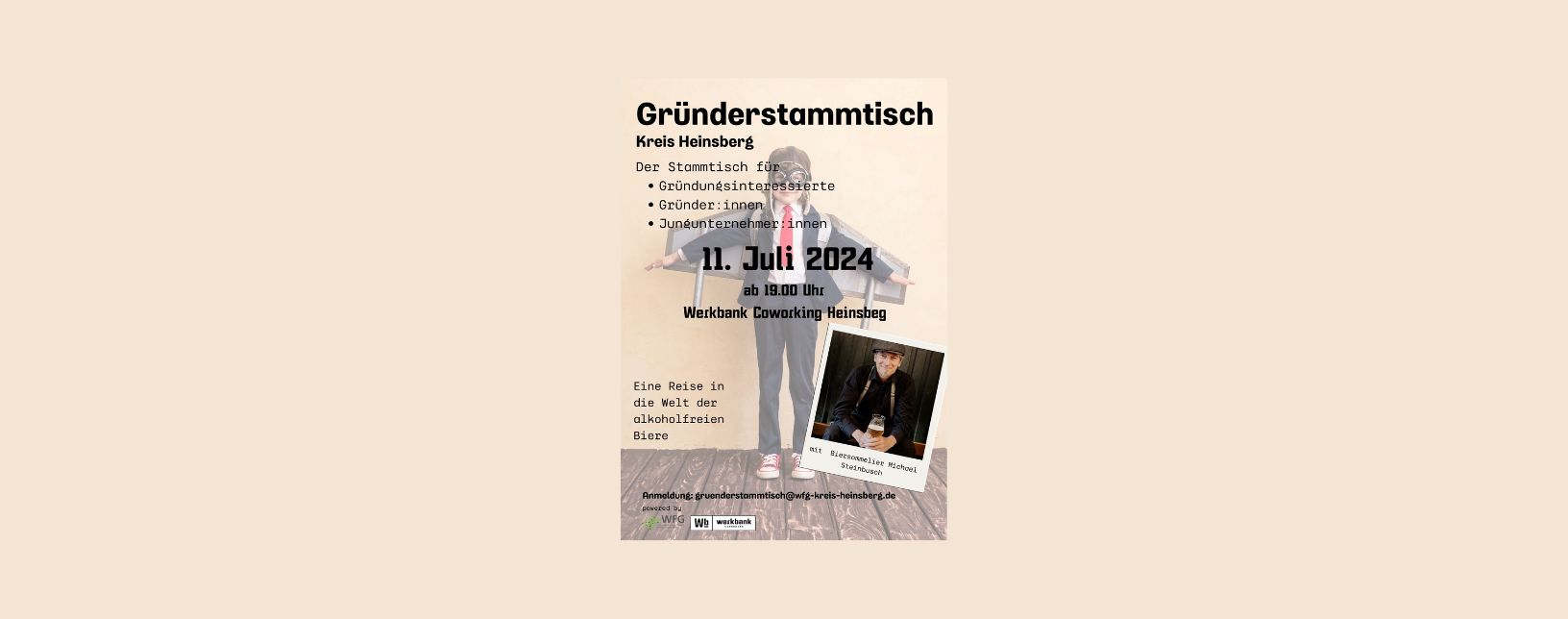 Die Wirtschaftsförderungsgesellschaft für den Kreis Heinsberg mbH (WFG) und die Werkbank Heinsberg laden für Donnerstag, 11. Juli 2024, zum Gründerstammtisch Kreis Heinsberg ein. Um 19.00 Uhr treffen sich Gründungsinteressierte, GründerInnen sowie UnternehmerInnen zum lockeren Erfahrungsaustausch in Sachen Unternehmensgründung und Unternehmensführung in der Werkbank Heinsberg.
