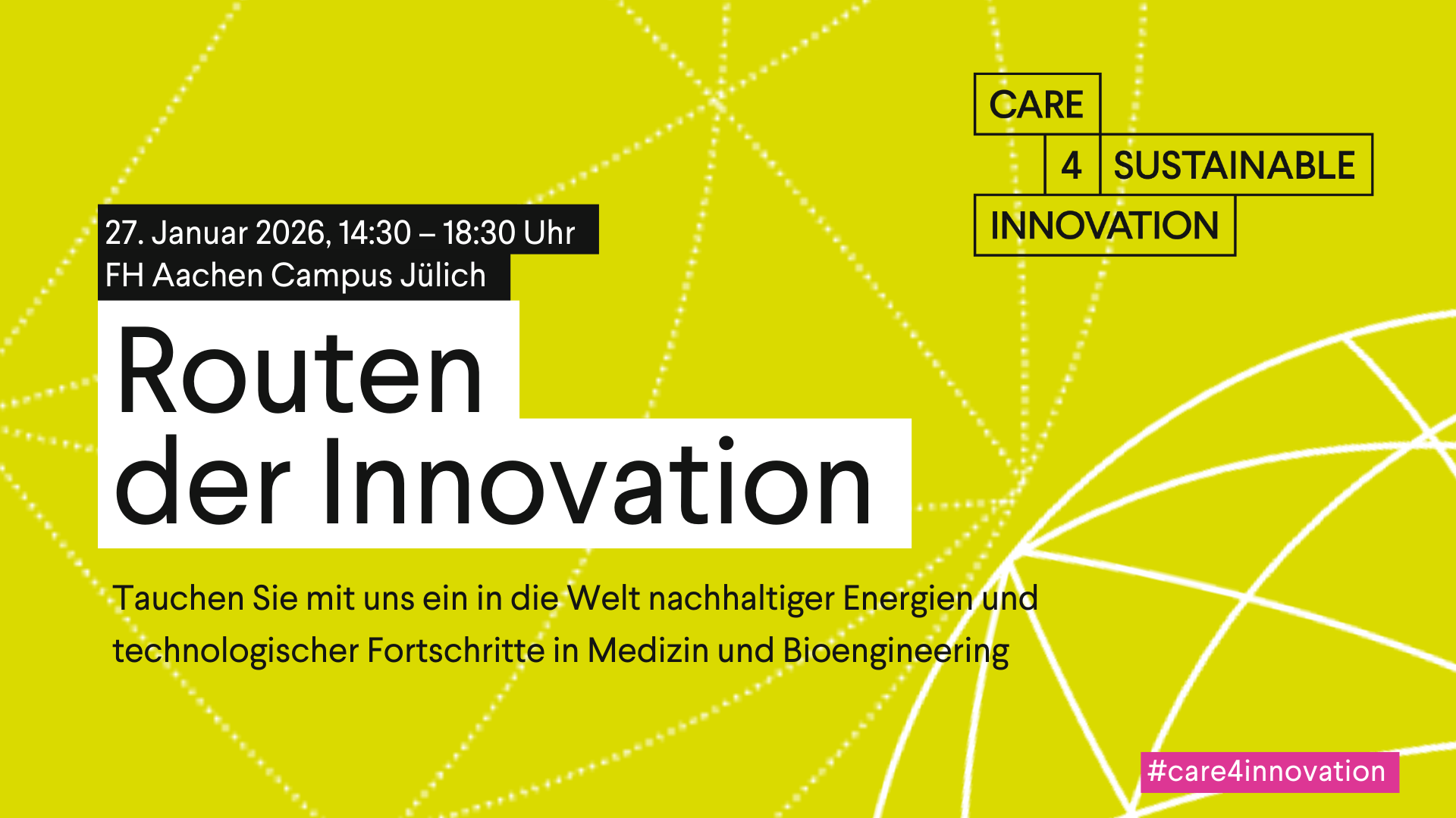 Mit den 2. Routen der Innovation lädt Care4Sustainable Innovation Sie ein, spannende Ideen und bewährte Praxisbeispiele aus den Bereichen Care und Life Science kennenzulernen. Ziel des Formats ist es, aktuelle Innovationen sichtbar und erlebbar zu machen – zum Anfassen, Ausprobieren und Verstehen.