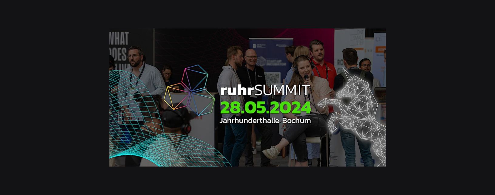 Am 28. Mai 2024 wird der ruhrHUB in der Jahrhunderthalle Bochum nachhaltige Mehrwerte generieren, um die digitale Wirtschaft von heute auf morgen voranzutreiben. Der ruhrSUMMIT 2024 bringt internationale Größen aus der digitalen Wirtschaft und dem Startup Ökosystem nahbar und neuartig zusammen. Werde Teil des Businessevents des Jahres!