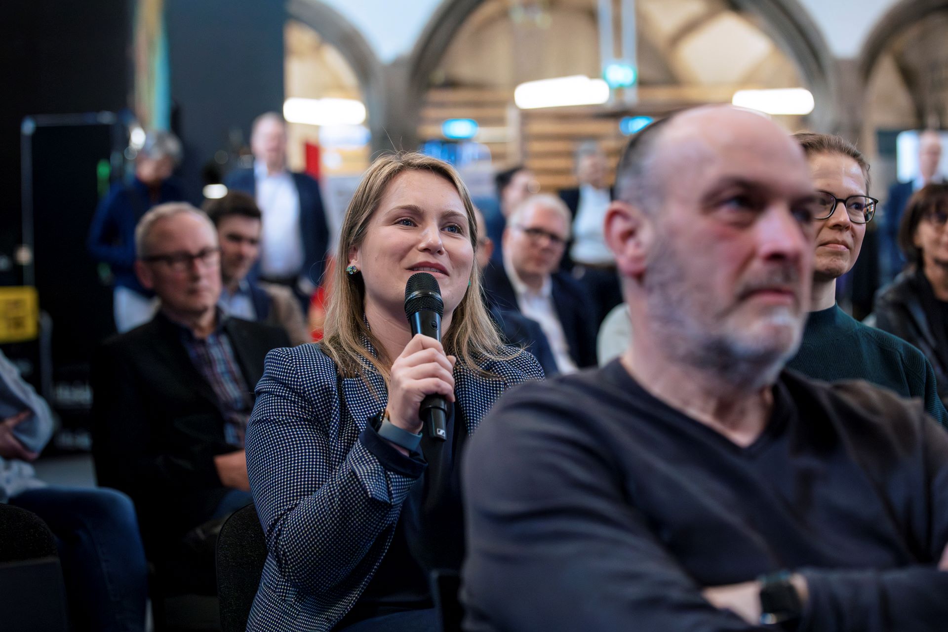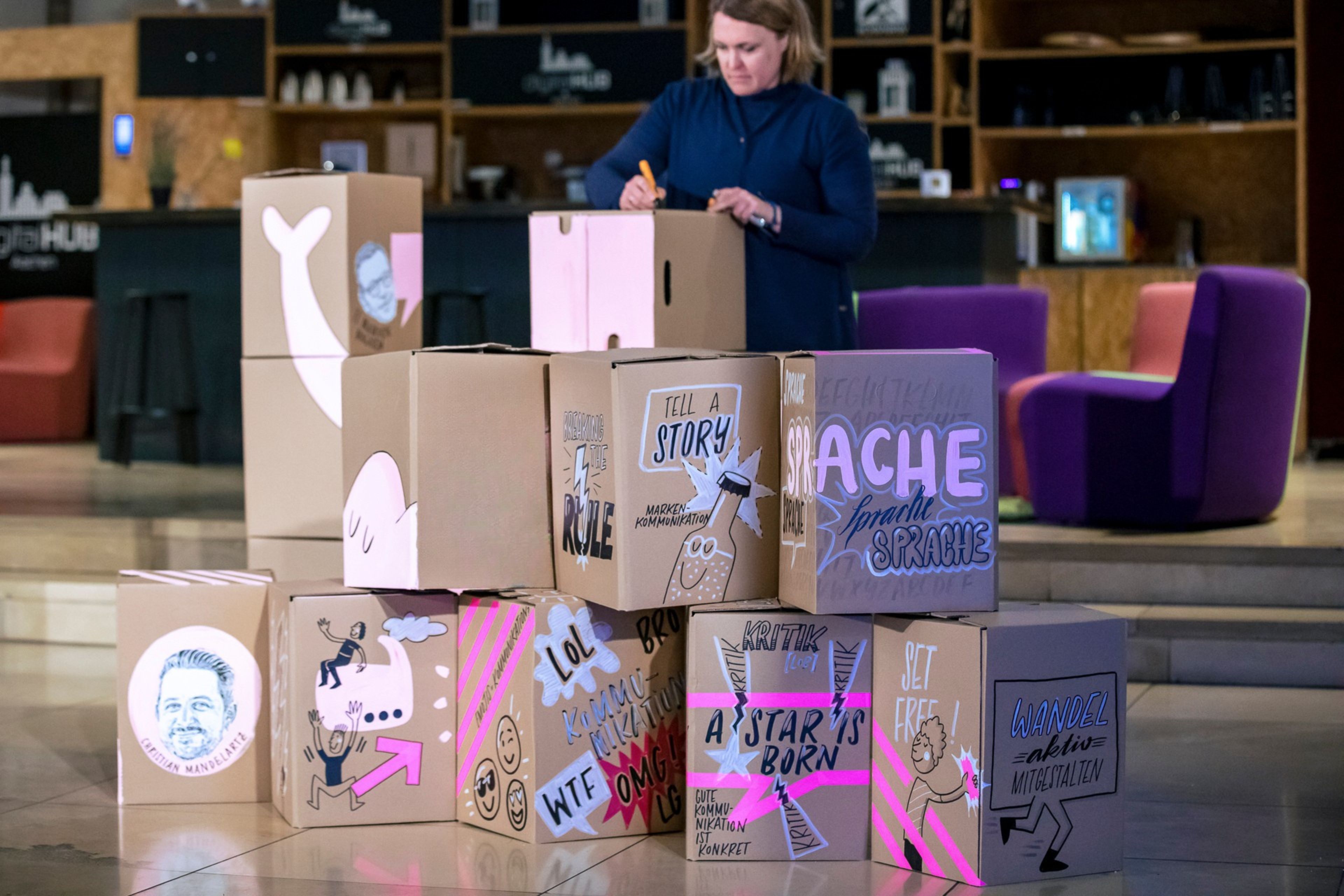 Gemeinsam können wir neue Ideen gestalten: Im direkten Austausch und in Gruppendiskussionen sind neue Impulse, Aha-Erlebnisse und innovative Ansätze für gemeinsame Herausforderungen entstanden. In einer Working Session sind die Teilnehmenden zusammengekommen und haben diskutiert: Was funktioniert aktuell gut in der Transformation? Welches fehlt uns für die Kommunikation? Was ist mal so richtig schief gegangen? Die Ergebnisse wurden gesammelt und von der Designerin Friederike Dietz direkt in einer künstlerischen Installation umgesetzt.