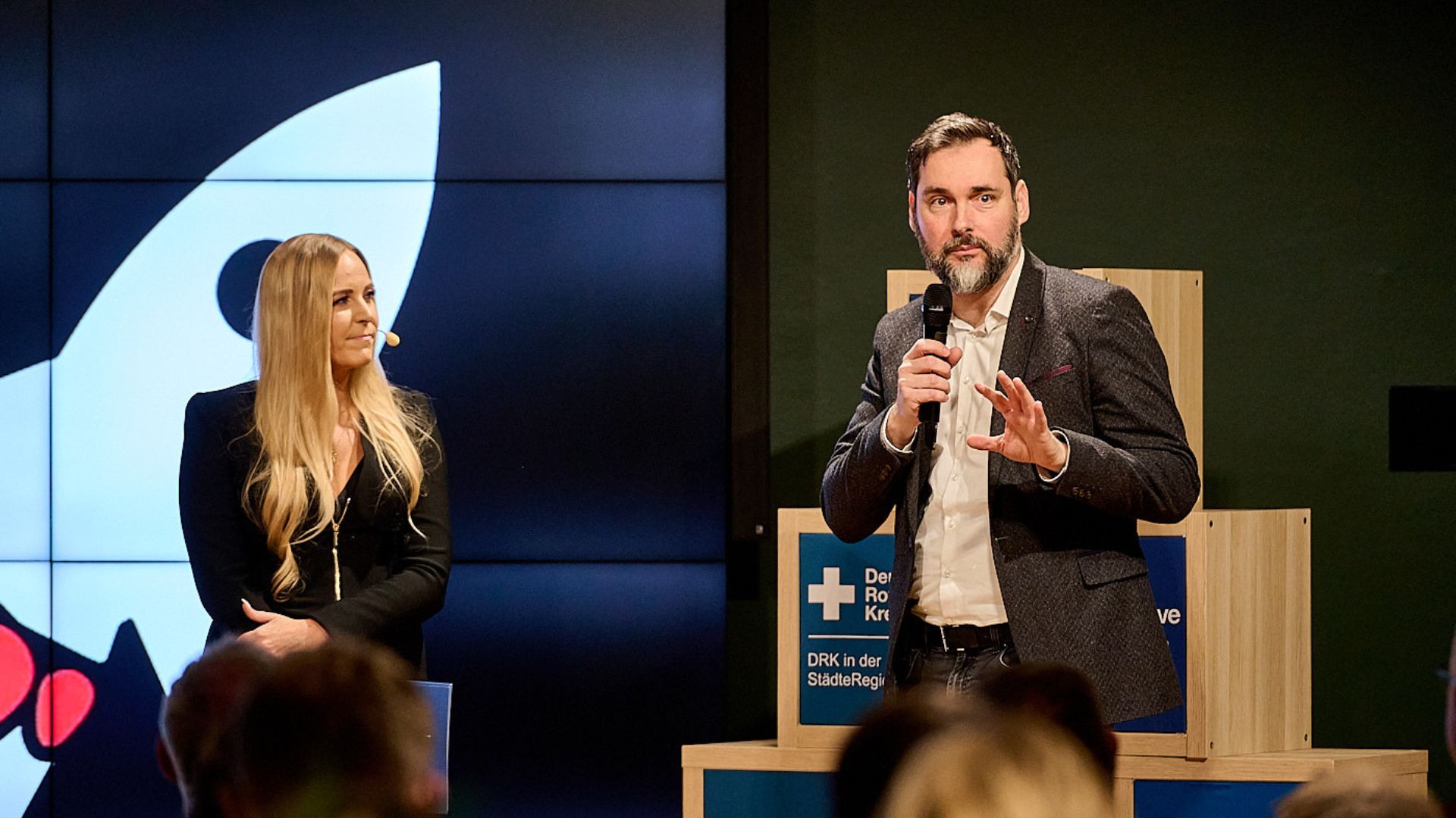 Dr. Oliver Grün, Vorstandsvorsitzender des digitalHUB Aachen e.V. und CEO der GRÜN Software Group und Mira Wilkers, Coach im digitalHUB e.V.