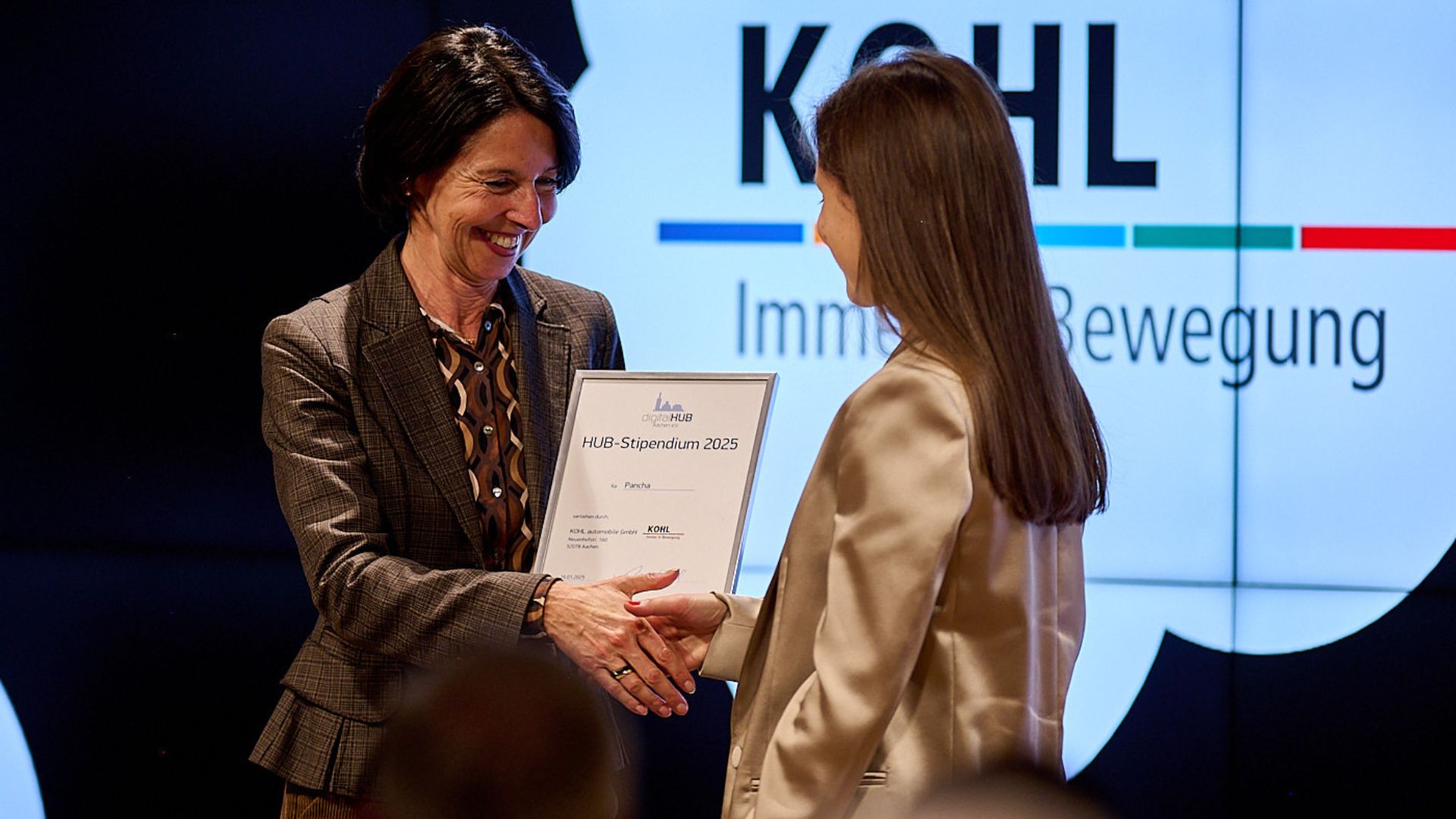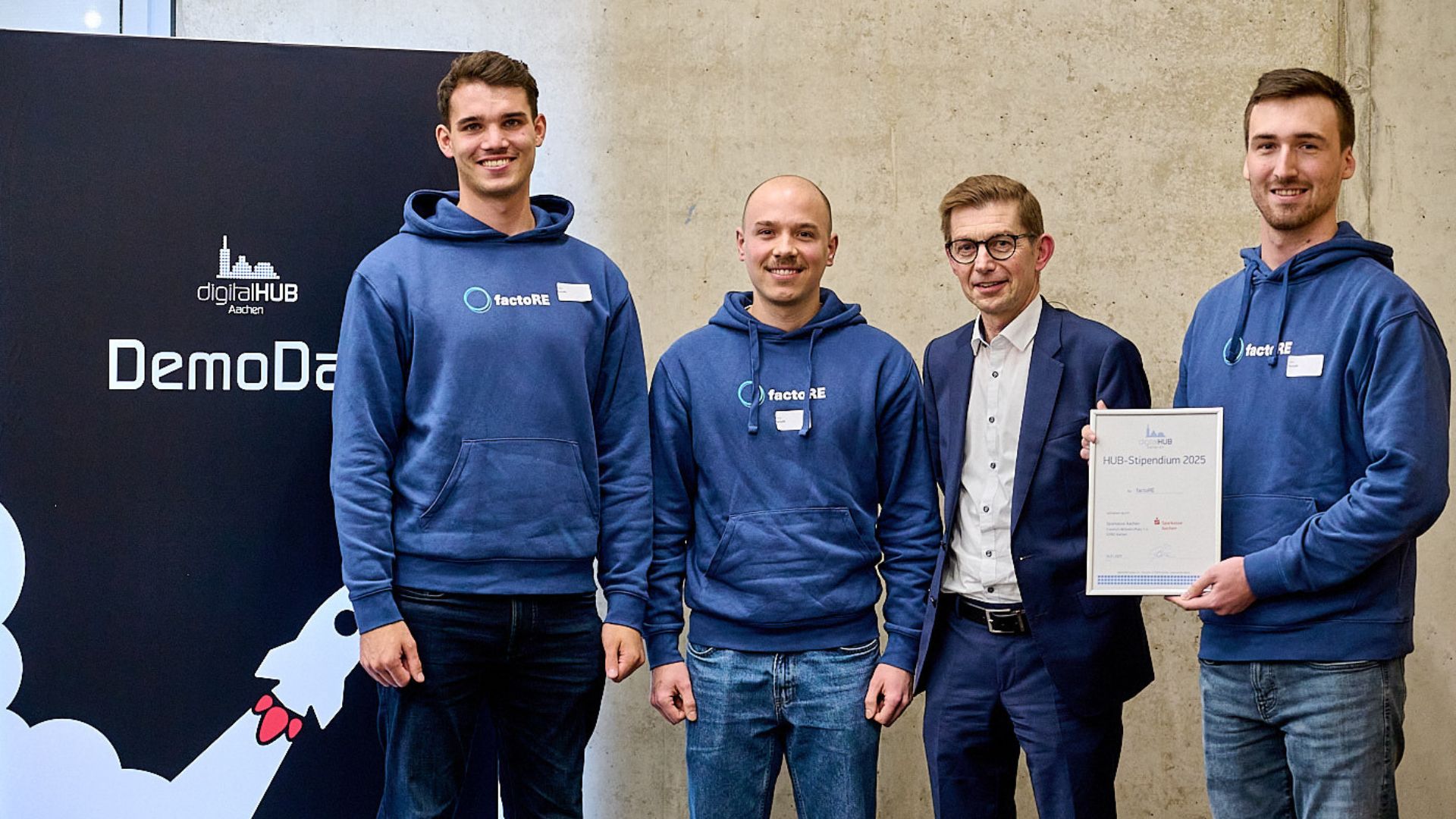 Teil des Programms war auch die Vergabe der HUB-Stipendien durch Partner und Hauptsponsoren des digitalHUB Aachen. Das Bistum Aachen, DRK KV Städteregion Aachen, KOHL automobile GmbH, Manage Now GmbH, NetAachen, die Sparkasse Aachen, die STAWAG und Zoho Corporation GmbH übernehmen Sponsorenschaften für das digitalHUB-Stipendium, das eine einjährige Startup-Business-Mitgliedschaft im digitalHUB umfasst. Damit können die ausgewählten Startups neben der Nutzung des CoWorkings und der Meeting-Räume kostenlos oder vergünstigt an den vielen Workshop- und Seminarangeboten aus dem digitalHUB teilnehmen.