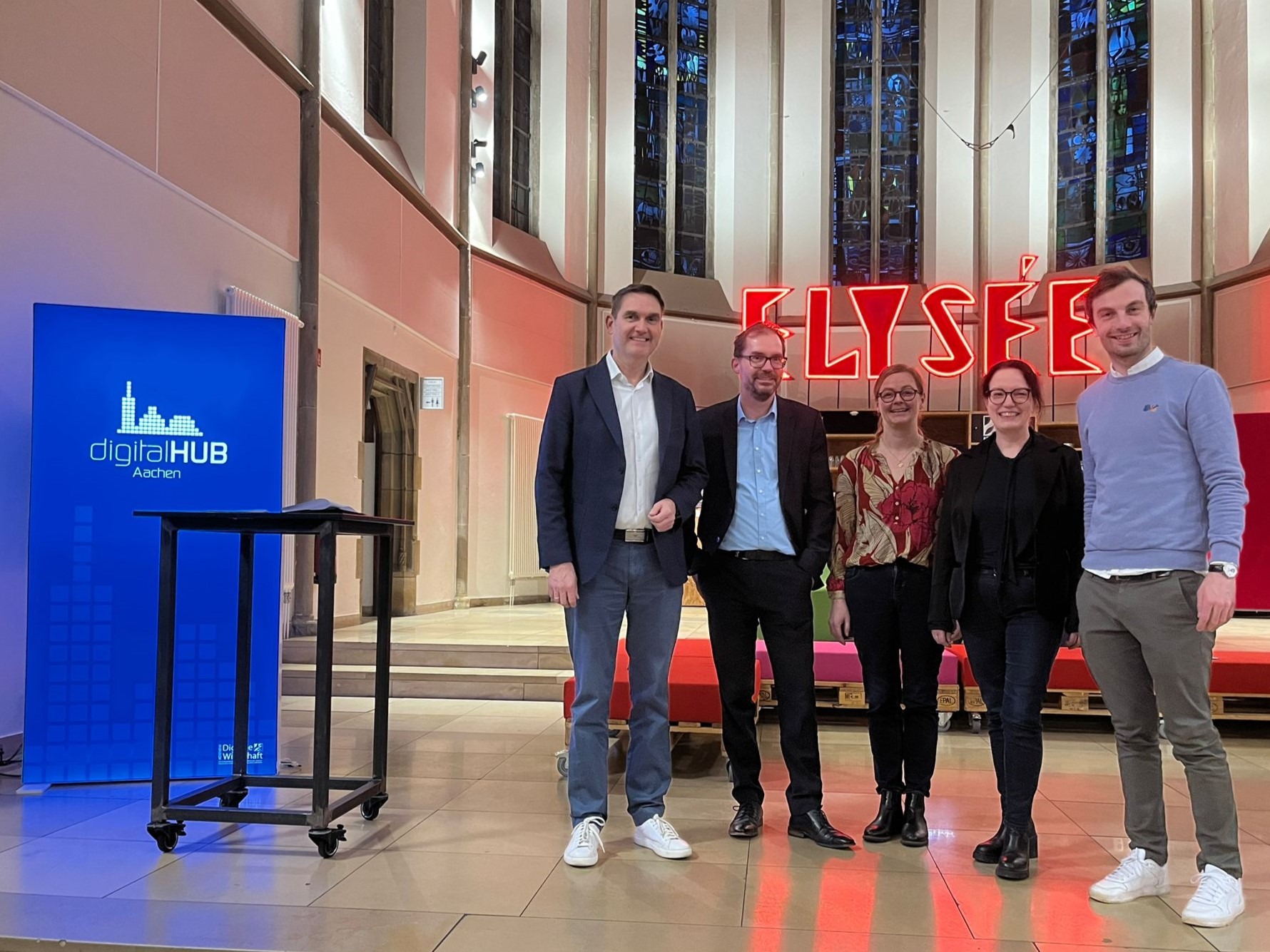 Eine besondere Ehre war es uns, Gastgeber für den hochkarätigen KI-Industrie-Gipfel am 7. Oktober des KI-Centers der RWTH Aachen zu sein. In unserer gut gefüllten digitalCHURCH diskutierten Bastian Nominacher (CEO Celonis), Jonas Andrulis (CEO Aleph Alpha), Jörg Herbers (CEO-Inform), Holger Hoos (Professor RWTH Aachen) und Franziska Weindauer (CEO TÜV AI.Lab) über die Chancen und Herausforderungen der KI am Industriestandort in Deutschland. Als Ergebnis des KI-Gipfels wurde ein Empfehlungsschreiben für den Umgang mit KI an die Regierung ausgearbeitet.