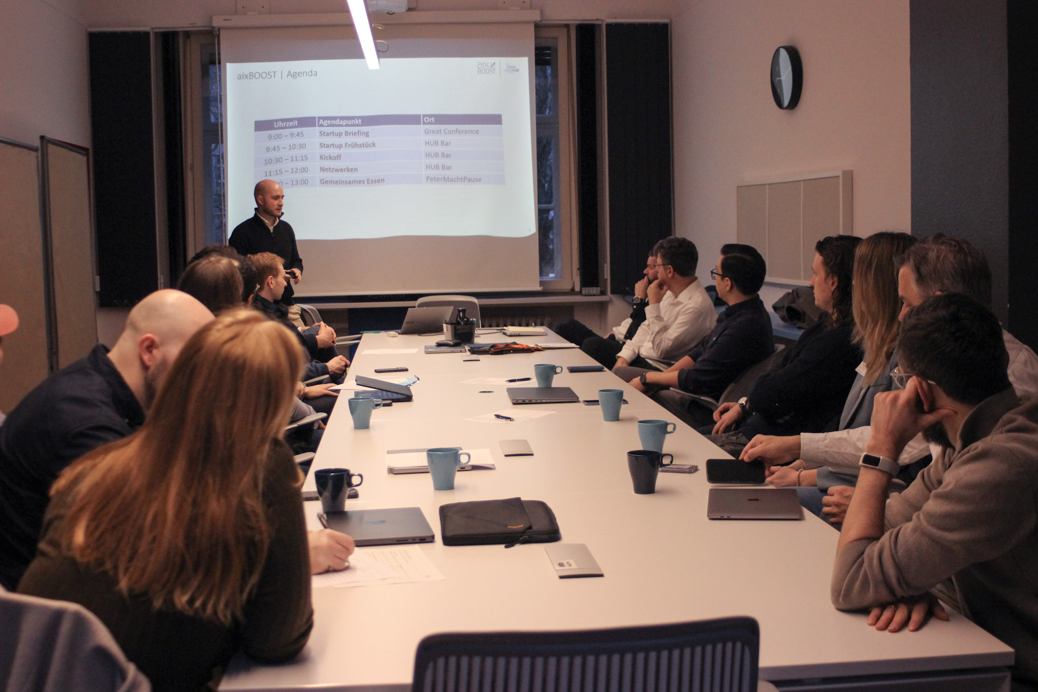 aixBOOST ist ein Wachstums-Accelerator für Startups, die bereits erste Schritte im Markt gegangen sind und nun vor den nächsten Herausforderungen stehen: Skalierung, Vertrieb, Teamaufbau und Finanzierung.