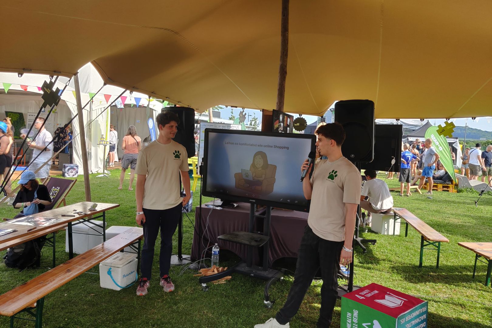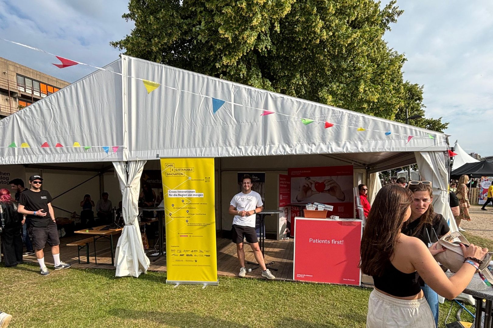 Ein besonderes Highlight war die Teilnahme der Fokusgruppen Gesundheit und Sustainability & Social Entrepreneurship am Festival. Unter der Sommersonne kamen an beiden Tagen zahlreiche interessierte Besucher:innen am Stand ins Gespräch – mit regem Austausch zu Themen wie sozialem Unternehmertum, nachhaltiger Innovation und Zukunftskompetenzen.