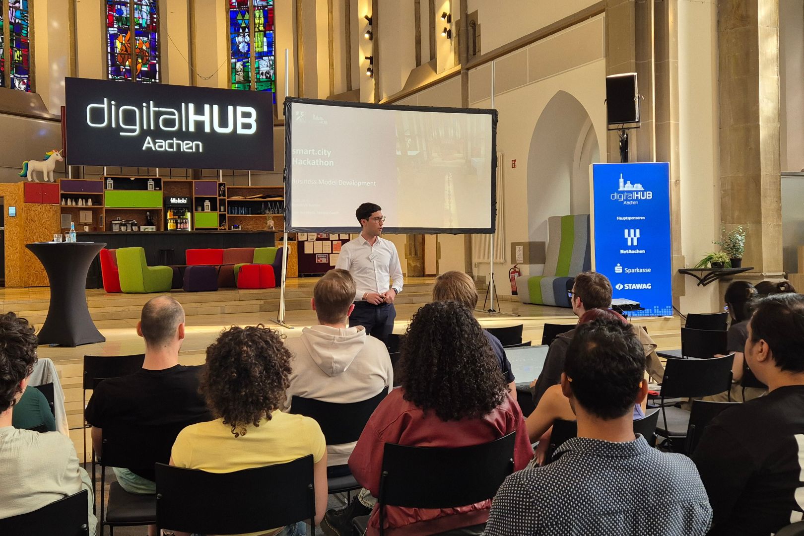 Veranstaltet wurde die Premiere des Hackathons vom Fachbereich Wirtschaft, Wissenschaft, Digitalstadt und Europa der Stadt Aachen in Kooperation mit dem KI-Center der RWTH Aachen, der Bischöflichen Akademie Aachen und dem digitalHUB Aachen e.V. – ausgetragen an einem ebenso besonderen wie symbolischen Ort: der digitalCHURCH.