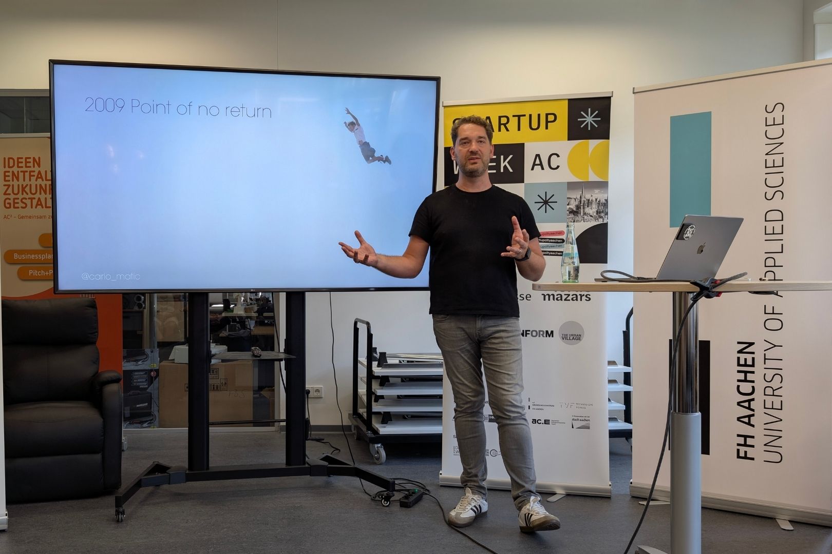 Am Donnerstag wurde im Gründungszentrum der FH Aachen offen über das gesprochen, was sonst oft verschwiegen wird: Scheitern, Fehler und Learnings. Mit viel Humor und Ehrlichkeit erzählten Carlo Matic (Interactive Pioneers) und Luca Oswald (Awakies) ihre Geschichten – und machten Mut, den eigenen Weg unbeirrt weiterzugehen. Ihr Fazit: Scheitern ist nicht das Ende – sondern oft der Anfang von echtem Wachstum.