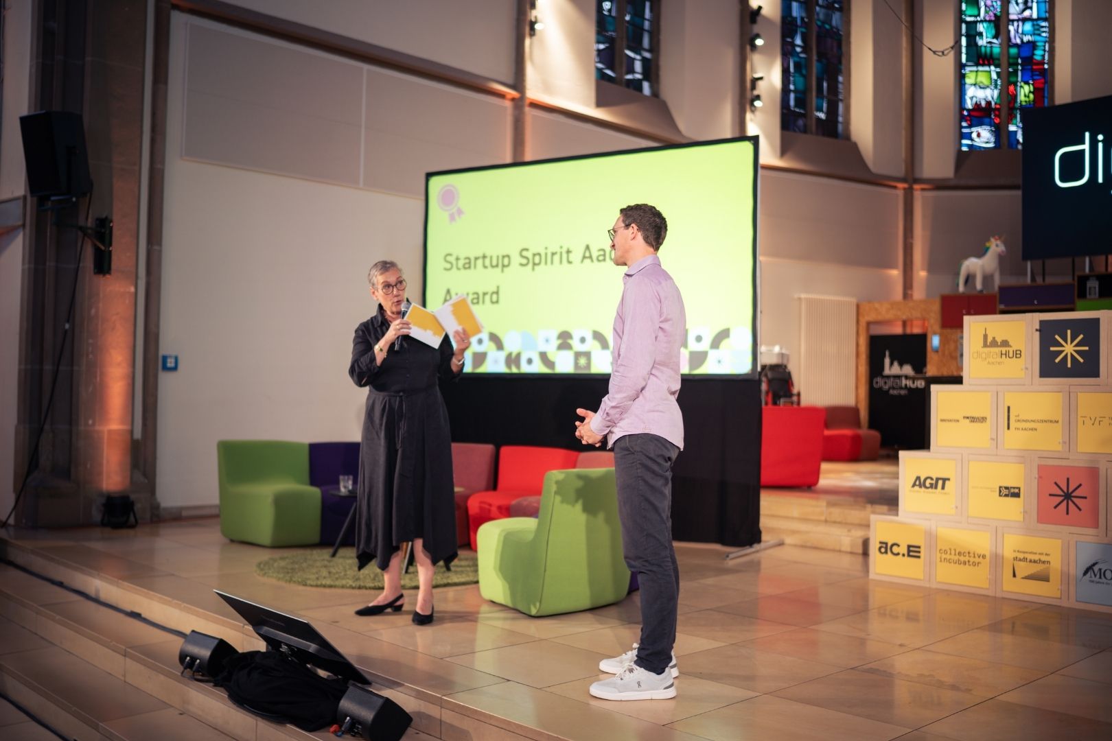 Ein besonderes Highlight war die erstmalige Verleihung des „Startup Spirit Aachen Award“ durch die Initiatoren der STARTUP WEEK, überreicht von der Oberbürgermeisterin Sibylle Keupen an Dr. Michael Minis, Gründer von MOQO, Vorstand im digitalHUB Aachen und ein echtes Vorbild für Mut, Unternehmergeist und Community-Spirit!