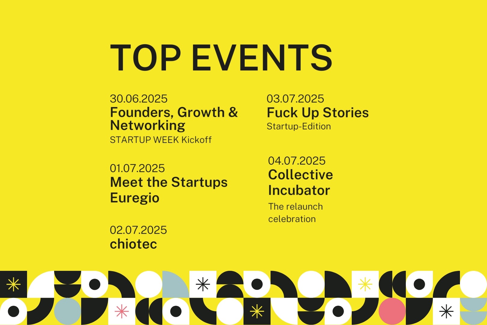 Ein weiteres Event-Highlight ist die ‚Fuck Up Stories – Startup Edition‘ am 3. Juli im Gründungszentrum der FH Aachen. Gründerinnen und Gründer, die ihre Startups (fast) vor die Wand gefahren haben, erzählen ehrlich und unbeschönigt ihre Geschichte und teilen ihre Erkenntnisse und Erfahrungen. Zudem feiert am 4. Juli der Collective Incubator seine Neueröffnung. Im neuen Zuhause der Jülicher Straße 209 gibt es mehr Platz für neue Ideen im Maker Space, CoWorking und wertvolle Kollaborationen.