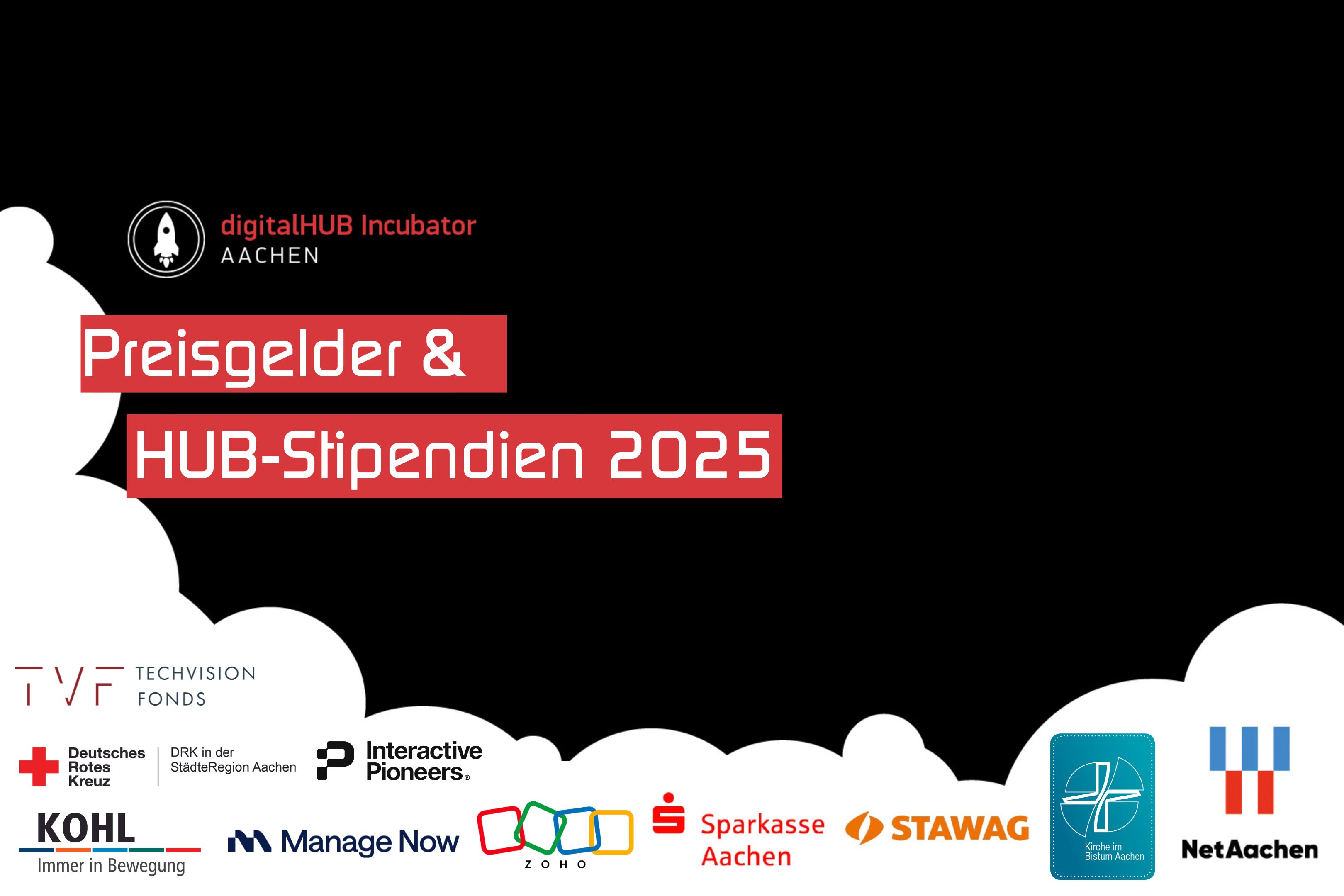 Auf dem DemoDay am 16. Januar 2025 vergeben unsere Sponsoren DRK KV Städteregion e.V., Interactive Pioneers GmbH, KOHL automobile GmbH, Manage Now GmbH, Zoho Corporation GmbH, Sparkasse Aachen, STAWAG, Bistum Aachen und NetAachen ein HUB-Stipendium, sodass ihr für weitere 12 Monate die Leistungen des digitalHUB Aachen e.V. kostenlos nutzen könnt.